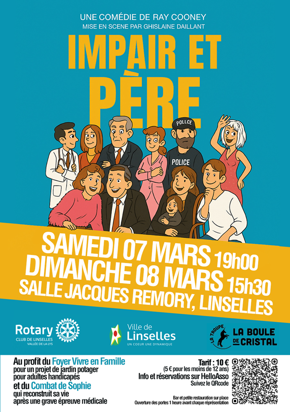 Réservez dès maintenant vos places sur HelloAsso : https://www.helloasso.com/associations/rotary-club-de-linselles-vallee-de-la-lys/evenements/theatre-impair-et-pere